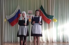 Хәрби-патриотик тәрбия бирү айлыгын йомгаклап бүген 10-11 сыйныф укучылары 23 февраль - Ватанны саклаучылар көненә карата бәйрәм концерты оештырдылар. Алар мәктәптәге барлык ир-егетләрне якынлашып килүче бәйрәм белән котладылар. Концерт матур җыр-биюләр, кызыклы скетч, шигырьләр белән үрелеп барды.