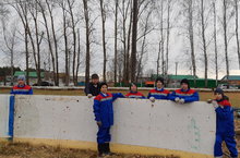 Грант буенча кайткан махсус киемнәр (спецовкалар) белән эшләве күңелле дә, куркынычсыз да. Волонтер укучылар мәктәп яны хоккей коробкасын җыюда көчләреннән килгән кадәр ярдәм иттеләр.