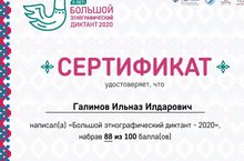 "Этнографик диктант-2020" дә катнашып үзегезне сынап карарга чакырабыз. Галимов Илназ (11 класс) ёщм Зиатдинова Талия үз көчләрен сынап карадылар инде, яхшы баллар җыйдылар. Афәрин!