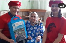 Юнармияче Шаймарданов Б.Т. һәм Миннегалиева Г.Ф. 90 яшьтән узган тыл ветераннарын - Садыкова Х., Ахтямова Т. не якынлашып килүче Өлкәннәр көне белән котлады. 02.10.2020
