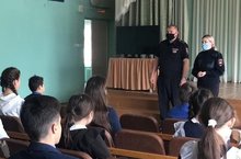 Инспектор по пропаганде ОГИБДД Шаймарданова Ксения Евгеньевна - старший лейтенант полиции - совместно с инспектором ОГИБДД Тухватуллиным Фанисом Вильдановичем (старший лейтенант полиции) провели беседу о безопасности дорожного движения с учащимися и педагогами школы.
