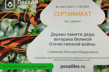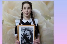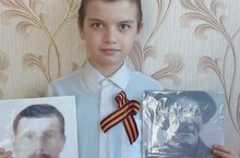 8 нче сыйныф укучысы Ягудина Нурия Әнәс кызы сугышта катнашкан бабасы Садыков Мухаметсалих Мухаметсадыйкович белән "Үлемсез полк" акциясенә кушылды