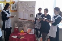 Выставка книг, посвящённая мужеству и стойкости советского народа в годы Великой Отечественной войны. Организована педагог-организатором Габдрахмановой М.Г., учителем татарского языка и литературы Шаймардановой М.Г., учителем технологии Хусаеновой А.Р., советником директора по воспитанию Кильдюшевой С.Г. с целью увековечить память наших героев-земляков, которые отдали свою жизнь за свободу и независимость нашей Родины, а также чтобы молодое поколение знало и помнило историю своей страны. -