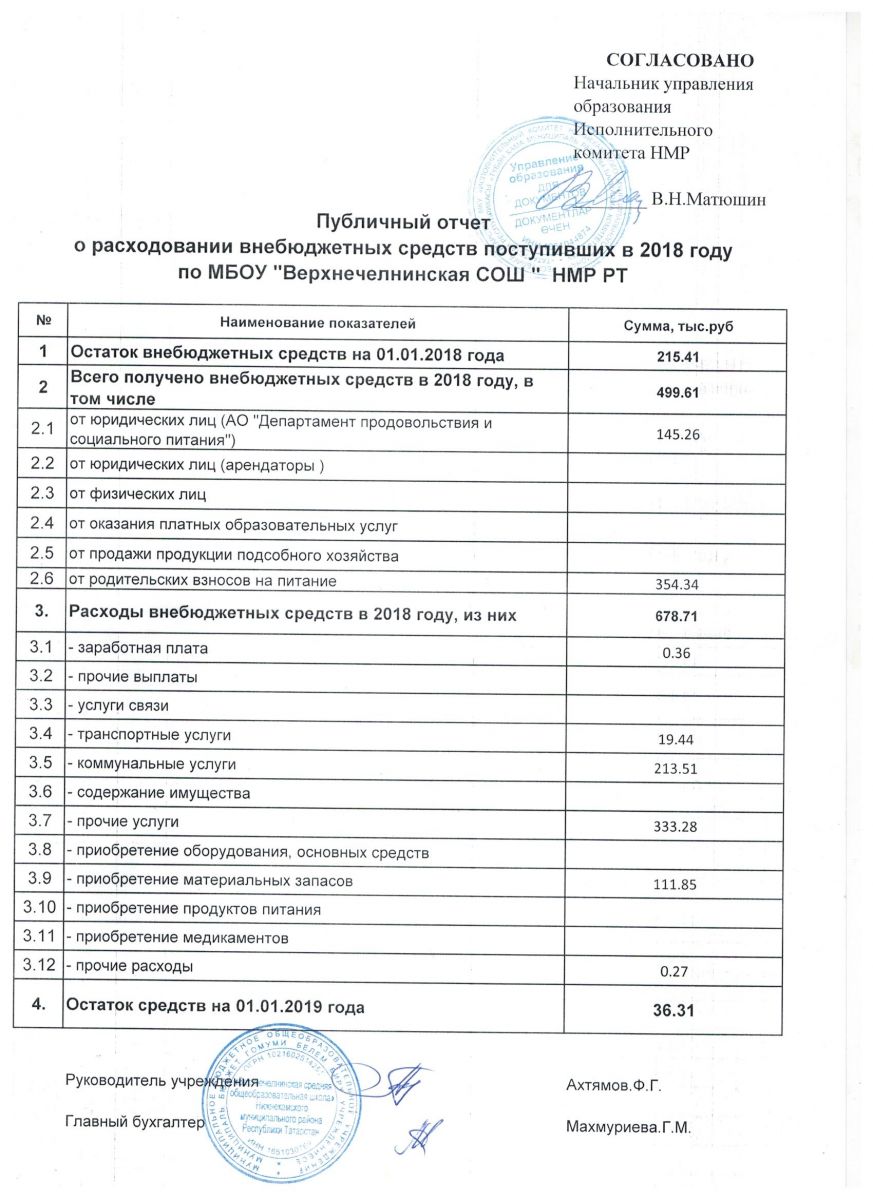 Публичный отчет о расходовании внебюджетных средств поступивших в 2018 году