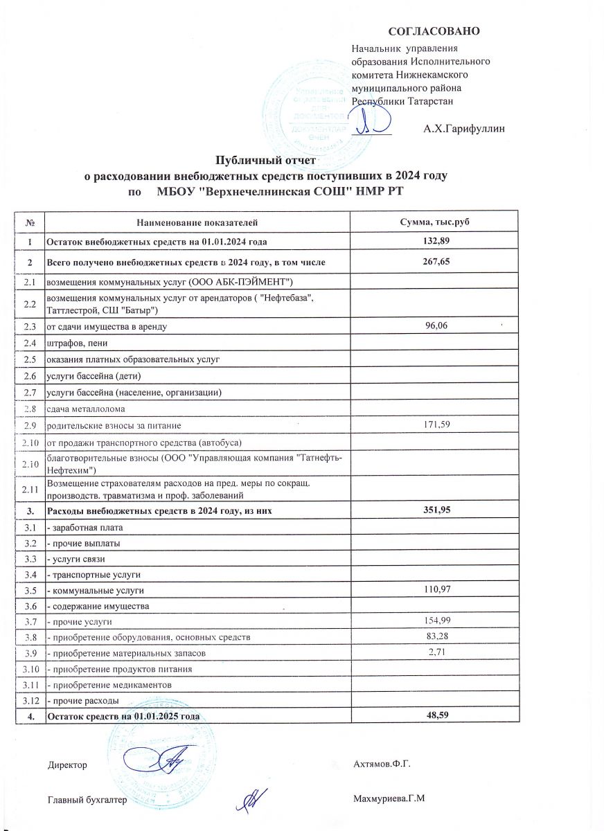 Публичный отчет о расходовании внебюджетных среств поступивших в 2024 году