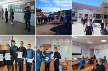 Начальник Елантовской пожарной части Минеев Н.Г. провел учебную эвакуацию, выступил на линейке о правилах безопасности, рассказал о профессии пожарного на классном часе.