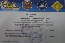 Руководителю школьного отряда ЮИД Петрунниковой С. П. вручили сертификат участника муниципального конкурса агитбригад по ПДД "Давай дружить, дорога!", а также форму для ребят, методический материал для работы от нижнекамского Автогородка.