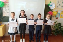 Торжественная линейка, посвящённая окончанию учебного года. Почётными грамотами за хорошую и отличную учебу наградили ударников и отличника. Также учащиеся и педагоги школы, принимавшие активное участие в муниципальных, школьных и спортивных конкурсах в течение года, награждены грамотами и сертификатами.