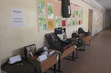 Также была организована выставка в рекреации школы, где были размещены чемоданы, а их содержимое выставлено на обзор.