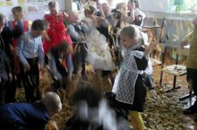 Какое настроение может быть осенью? Да самое веселое! Пели песни, читали стихи, участвовали в играх «Осеннего калейдоскопа» ребята начальной школы. Сыпались под ноги золотые листья, грибники с корзинами собирали настоящие грибы, все вместе вытаскивали выращенную дедом репку, учились обходить осенние лужи, складывали в лукошко сосновые шишки и пили ароматный чай.