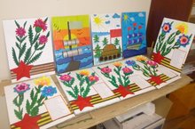 Выставка рисунков и поделок сделана руками учащихся - членов кружка "Художественная аппликация" ко Дню защитника Отечества.