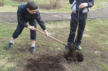 В рамках акциии "Зеленая волна" на территории школы были высажены саженцы рябины и березы.