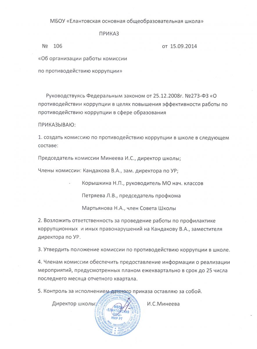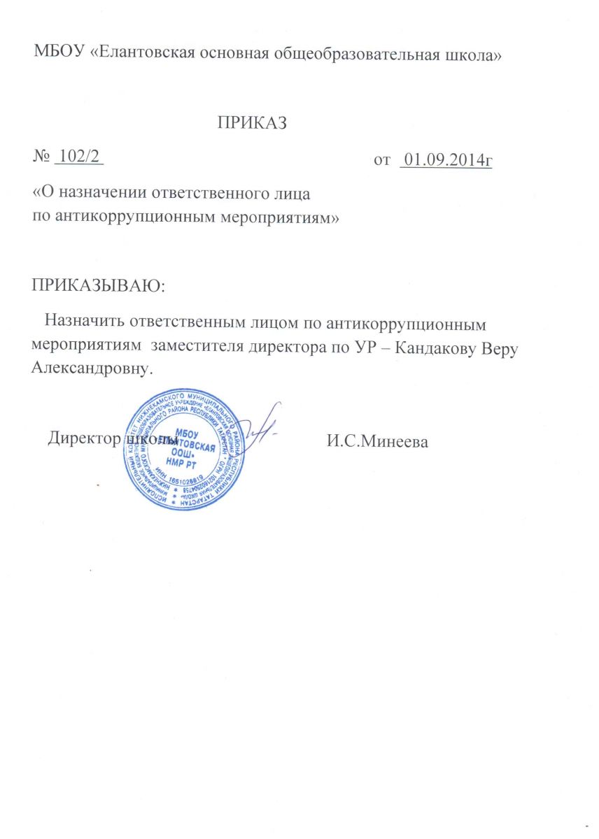 О назначении ответственного лица по антинкоррупционным мероприятиям