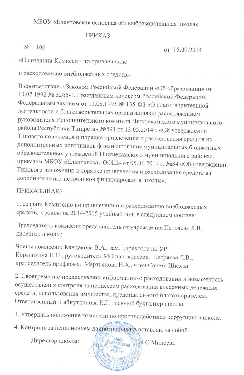 О создании комиссии по привлечению и расходованию внебюджетных средств