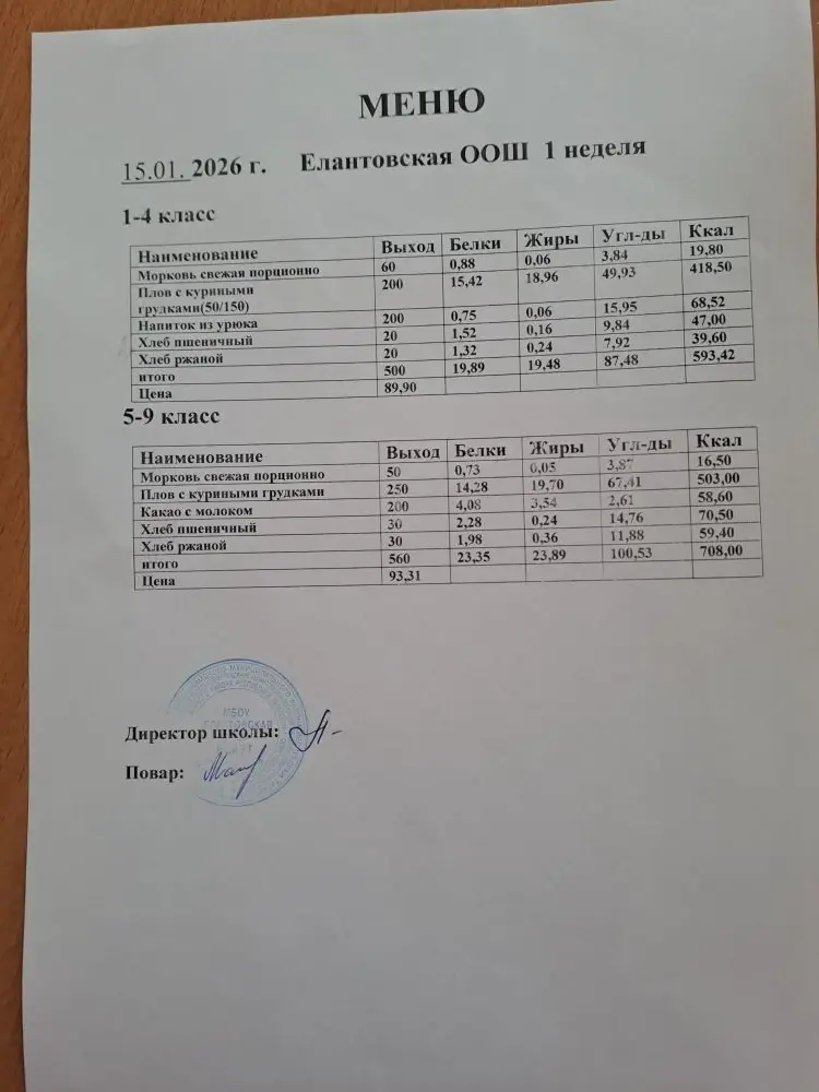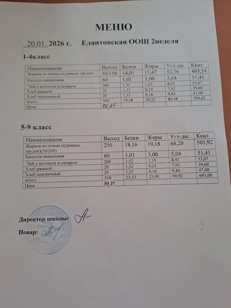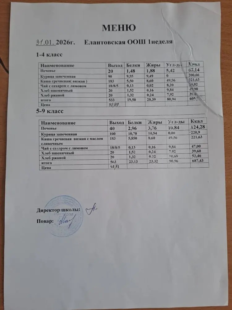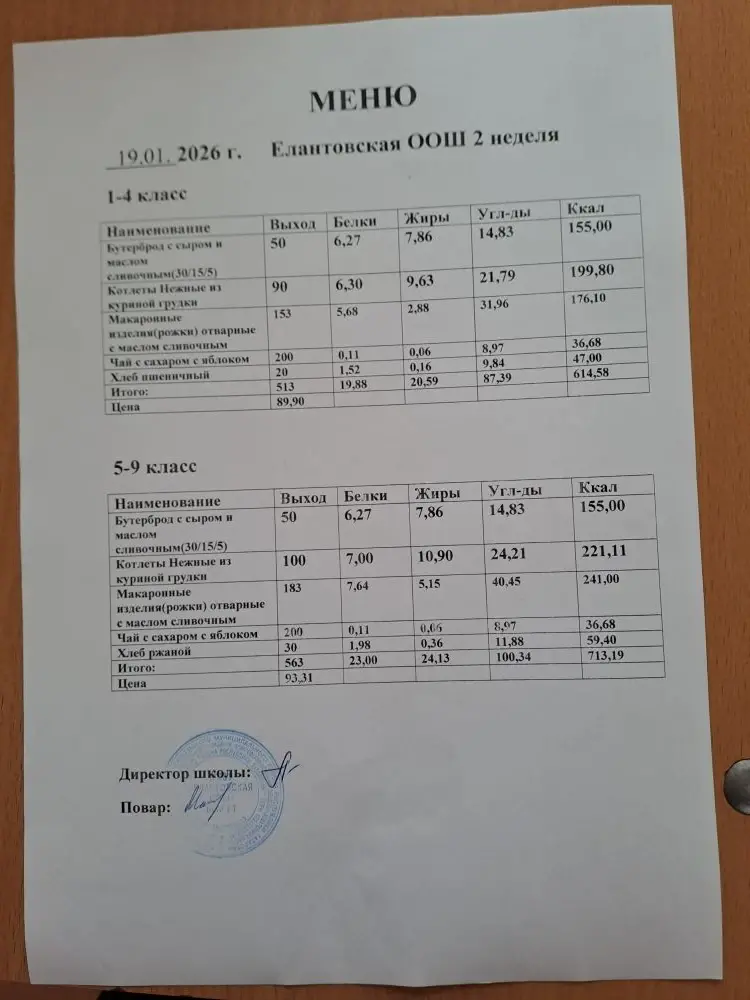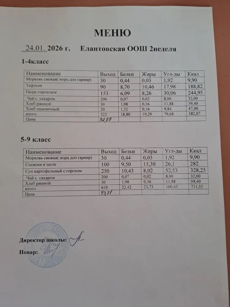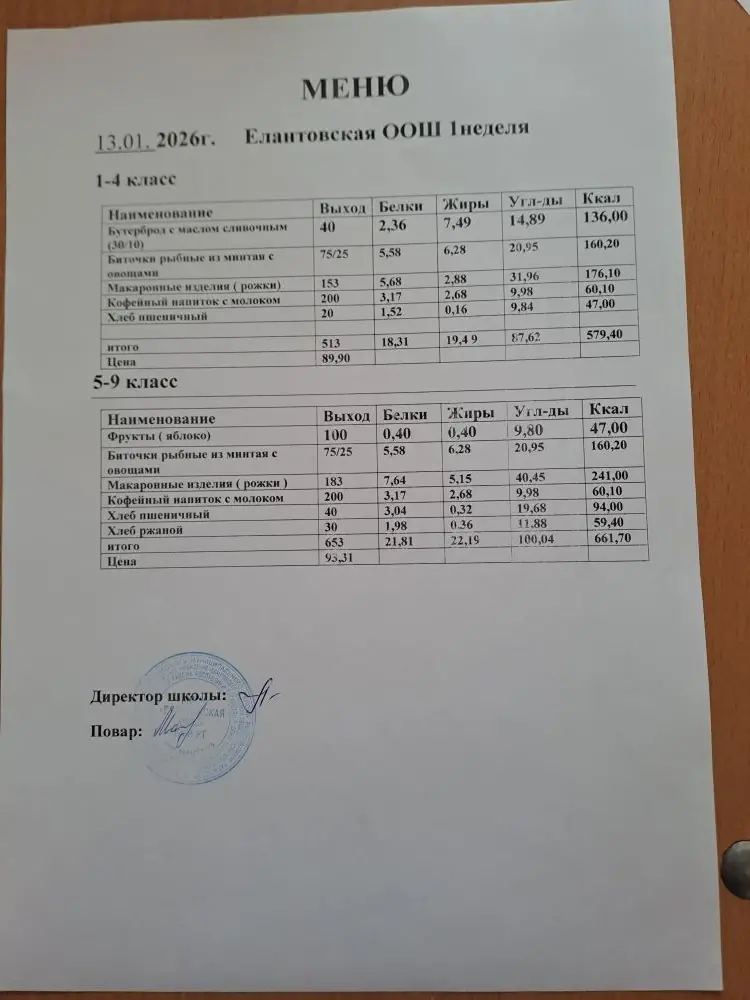 Двухнедельное меню для 1-4 классов c 1 сентября 2025 г.