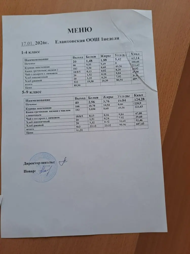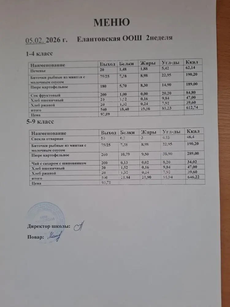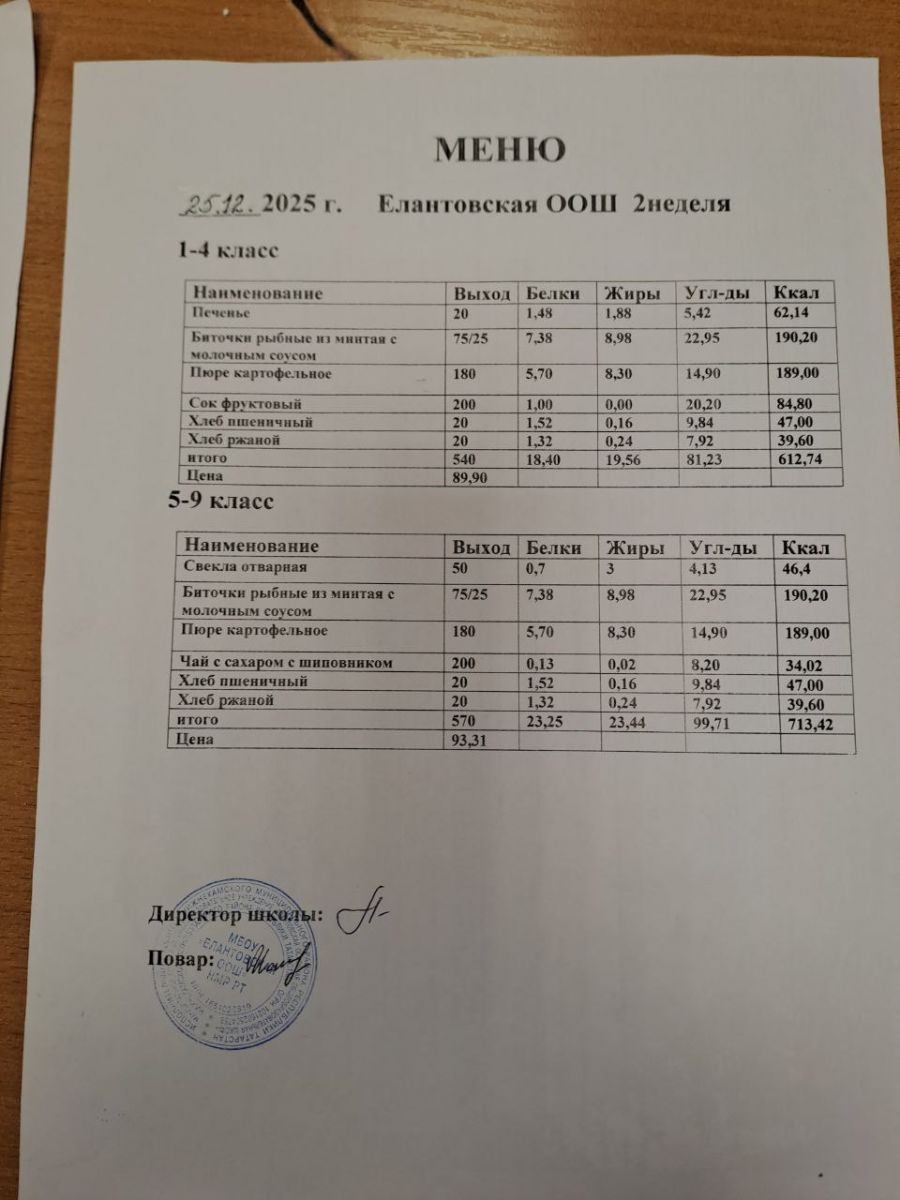 Двухнедельное меню для 5-9 классов c 1 сентября 2025 г.