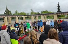 В знак связи поколений и памяти о подвиге советских воинов, дети и взрослые возложили цветы к мемориалу и почтили память павших минутой молчания. -
