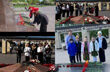 После митинга все ребята и педагоги возложили цветы к Вечному огню в Парке Победы, в знак благодарности от потомков, отдавая дань глубокого уважения великому подвигу и героизму победителей. -