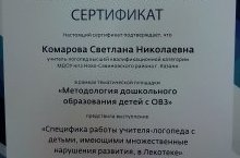 Сегодня на Международном образовательном форуме, посвященному педагогике и психологии дошкольного детства "Личность XXI века: Современные педагогические технологии" наш учитель-логопед Комарова Светлана Николаевна в рамках тематической площадки "Методология дошкольного образования детей с ОВЗ" представила выступление "Специфика работы учителя логопеда с детьми, имеющими множественные нарушения развития, в Лекотеке".