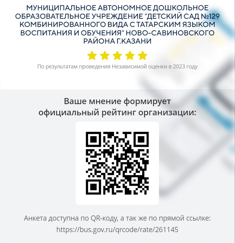 Муниципальное автономное дошкольное образовательное учреждение "Детский сад № 129 комбинированного вида с татарским языком воспитания и обучения" Ново - Савиновского района г.Казани
