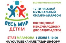 1 июня 2020 года в Казани пройдет один из самых продолжительных музыкальных онлайн-марафонов, посвященный Международному Дню защиты детей. Более 150 артистов, ведущих, блогеров и успешных людей придут в студию, чтобы поздравить мальчишек и девчонок с их празником.