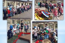 В преддверии главного праздника нашей страны, 8 мая коллектив и ребята старших и подготовительных групп отправились к вечному огню, где отдали дань уважения всем солдатам, не вернувшимся с войны, всем, кто погиб в боях и не дожил до сегодняшнего дня. Дети возложили цветы и поклонились солдатам, погибшим в Великой Отечественной войне.