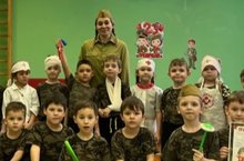 Каждый год в детском саду проводятся мероприятия, посвященные Дню защитника Отечества, способствующие воспитанию у детей уважения к памяти защитников Отечества и подвигам героев Отечества, к Российской армии, которая защищает мирную жизнь россиян. 21 февраля в детском саду прошла спортивно-патриотическая игра "Зарница". Во втором здании детского сада была проведена спортивно-патриотическая эстафета, гостем которой стал дедушка воспитанника подготовительной группы №4 полковник Пантюхин Сергей Юрьевич. Сергей Юрьевич рассказал детям, как служил на Дальнем Востоке, показал детям настоящий шлем танкиста, индивидуальный рацион питания военнослужащего. Также дети каждой группы совместно с родителями и педагогами выпустили стенгазеты "Мой папа-главный защитник"