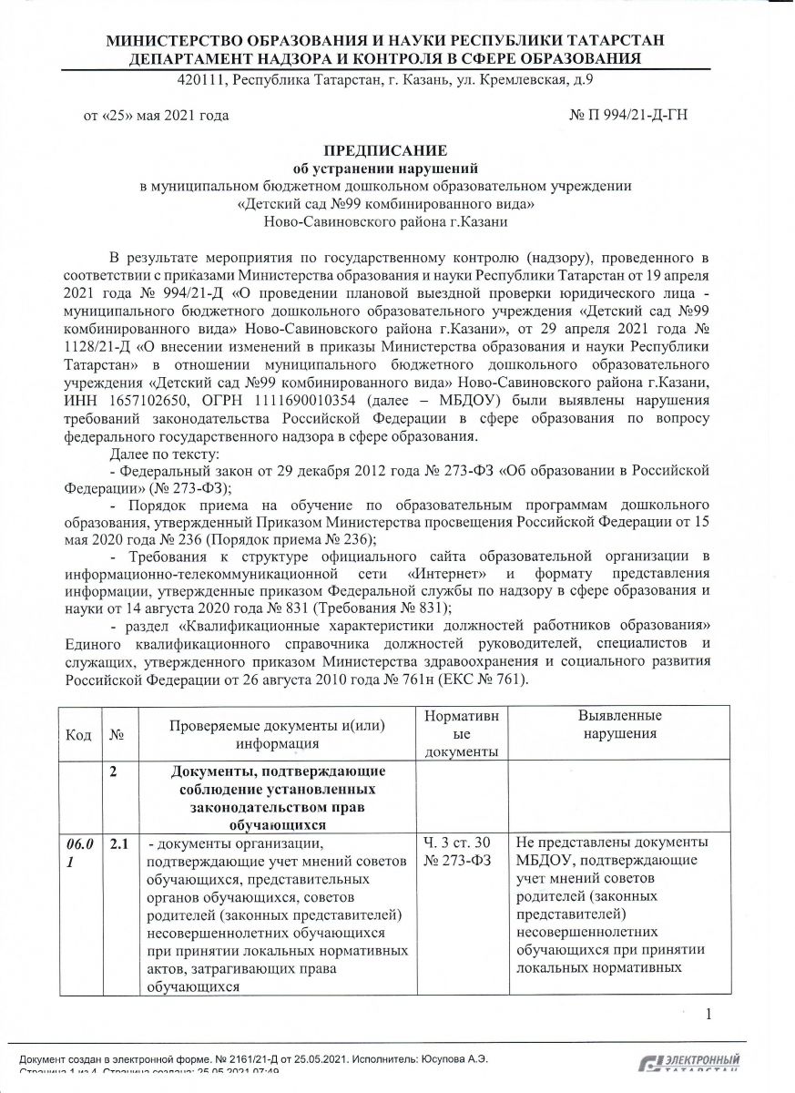 Предписания органов, осуществляющих государственный контроль (надзор) в сфере образования, отчеты об исполнении таких предписаний
