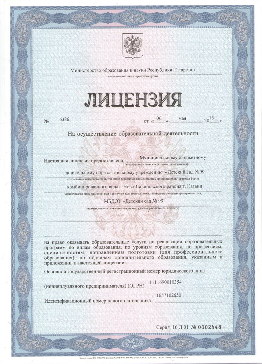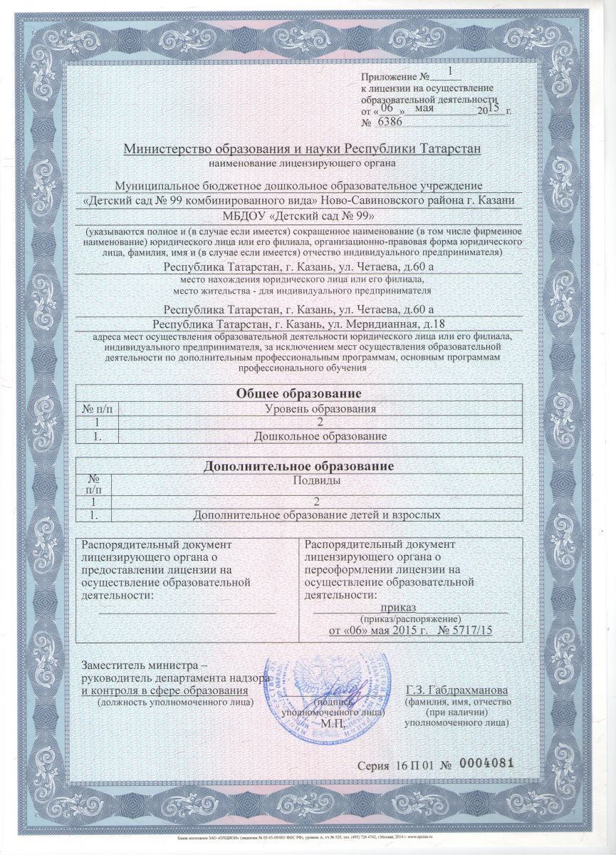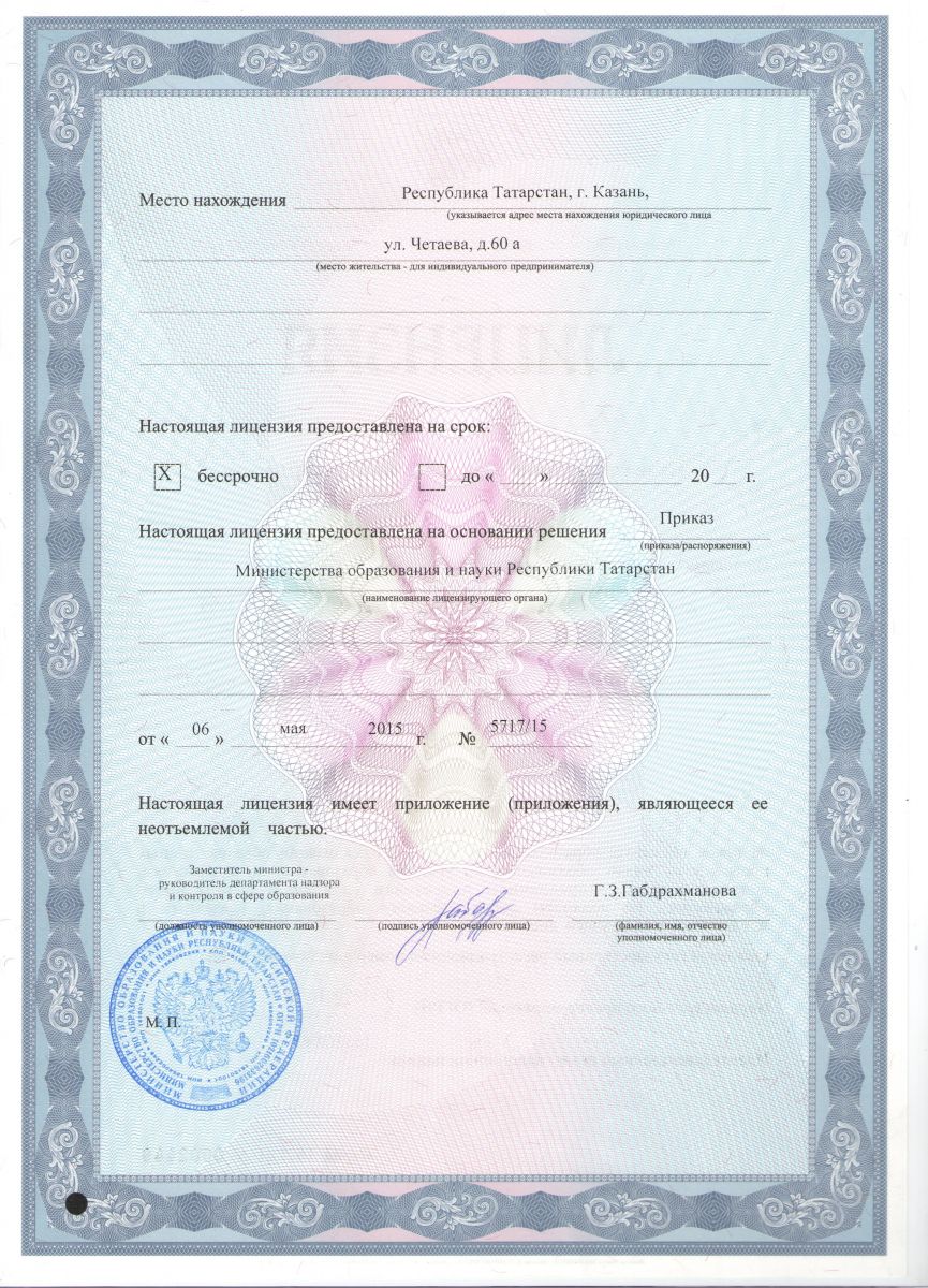 Лицензия МОиН РТ на осуществление образовательной деятельности