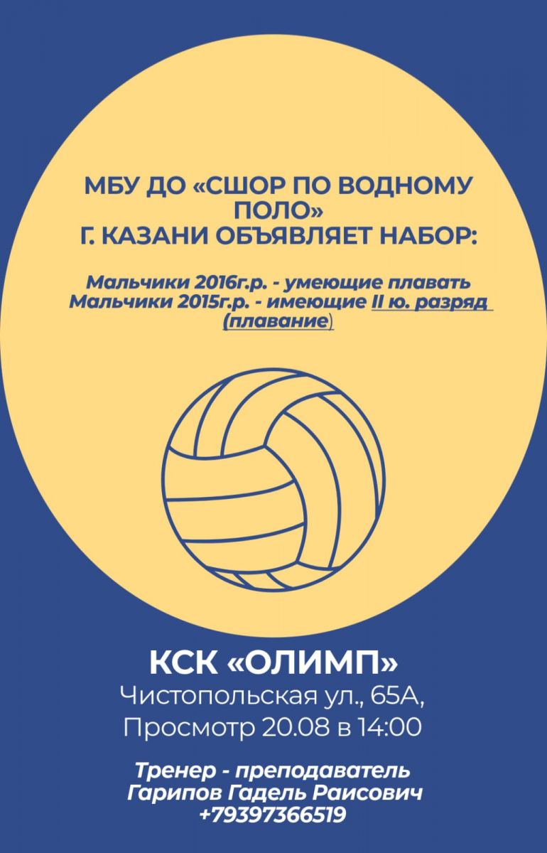 МБУ ДО "СШОР по водному поло" г.Казани объявляет набор: