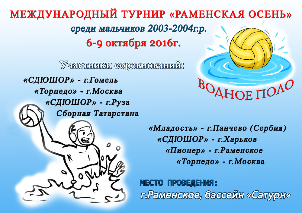 Международный турнир "Раменская осень". Сборная команда ДЮСШОР по водному поло заняла 2 место, ЗТ РСФСР - Лелюх В.А.