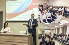 Сегодня в Гимназии № 179 - центре образования Ново-Савиновского района г. Казани состоялся необычный Парламентский урок на тему «Сохраняя традиции, создаем будущее», посвященный 100-летию образования ТАССР и 75-летию Победы в Великой Отечественной войне». Его провел Алексей Станиславович Созинов, ректор Казанского ГМУ, депутат Госсовета РТ VI созыва. Такие уроки проходят на этой неделе во всех школах республики по распоряжению Председателя Государственного Совета Республики Татарстан Ф.Х. Мухаметшина в целях воспитания активной гражданской позиции и формирования патриотизма, углубления знаний учащихся о государственном устройстве страны.