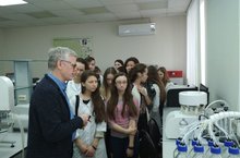 Учащиеся встретились с Мустафиным Р. И. директором института фармации, который рассказал о реорганизации факультета, оснащении лабораторий, повсеместной грантовой поддержке студентов. Отдельное внимание было уделено зарубежным стажировкам, которые организуются для студентов ВУЗа. Они включают в себя не только посещение научно-практической конференции, но и обучение заграницей. Институт Формации сотрудничает с вузами США, Германии и Турции. Для учащихся была проведена экскурсия по Институту. Руслан Ибрагимович, провел учащихся по лабораториям и ознакомил с их техническим оснащением. Отдельное внимание было уделено посещению симуляционной аптеки. Ребята, узнали о том какие этапы проходят лекарства от лаборатории до аптечной полки.