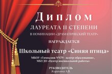 Спектакль "Не оставайся одна" школьного театра "Синяя птица" стал лауреатом второй степени Всероссийского фестиваля театрального творчества "Беренче театр". В рамках этого фестиваля артисты нашего театра не только показали свои таланты, но и посетили мастер-класс по актерскому мастерству, который провели педагоги Казанского института культуры. Поздравляем юных актеров и режиссера театра Алину Владимировну Жарахину.