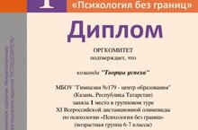 Учащиеся гимназии приняли участие в личном и групповом турах XI Всероссийской олимпиады "Психология без границ". Наиболее успешным стало выступление наших ребят в групповом туре. Команда "Творцы успеха" стала победителем в младшей группе (6-7 классы), отстав от абсолютных победителей лишь на одну позицию. Команда "Большие умницы" стала победителем в средней группе (8-9 классы). В каждо́й группе участвовало более 50 команд со всей страны.