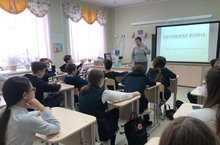 18 февраля в нашей гимназии прошла встреча «Без срока давности», посвященная памяти жертв времен ВОВ. В рамках этого мероприятия Заведующий музея-мемориала Великой Отечественной войны, Александров Александр Александрович провел беседу с восьмиклассниками, из которой ребята узнали о страшных годах войны и о жесткости фашистов. Ученикам был показан документальный фильм о погибших и пропавших без вести людей. Помните и чтите память павших героев!