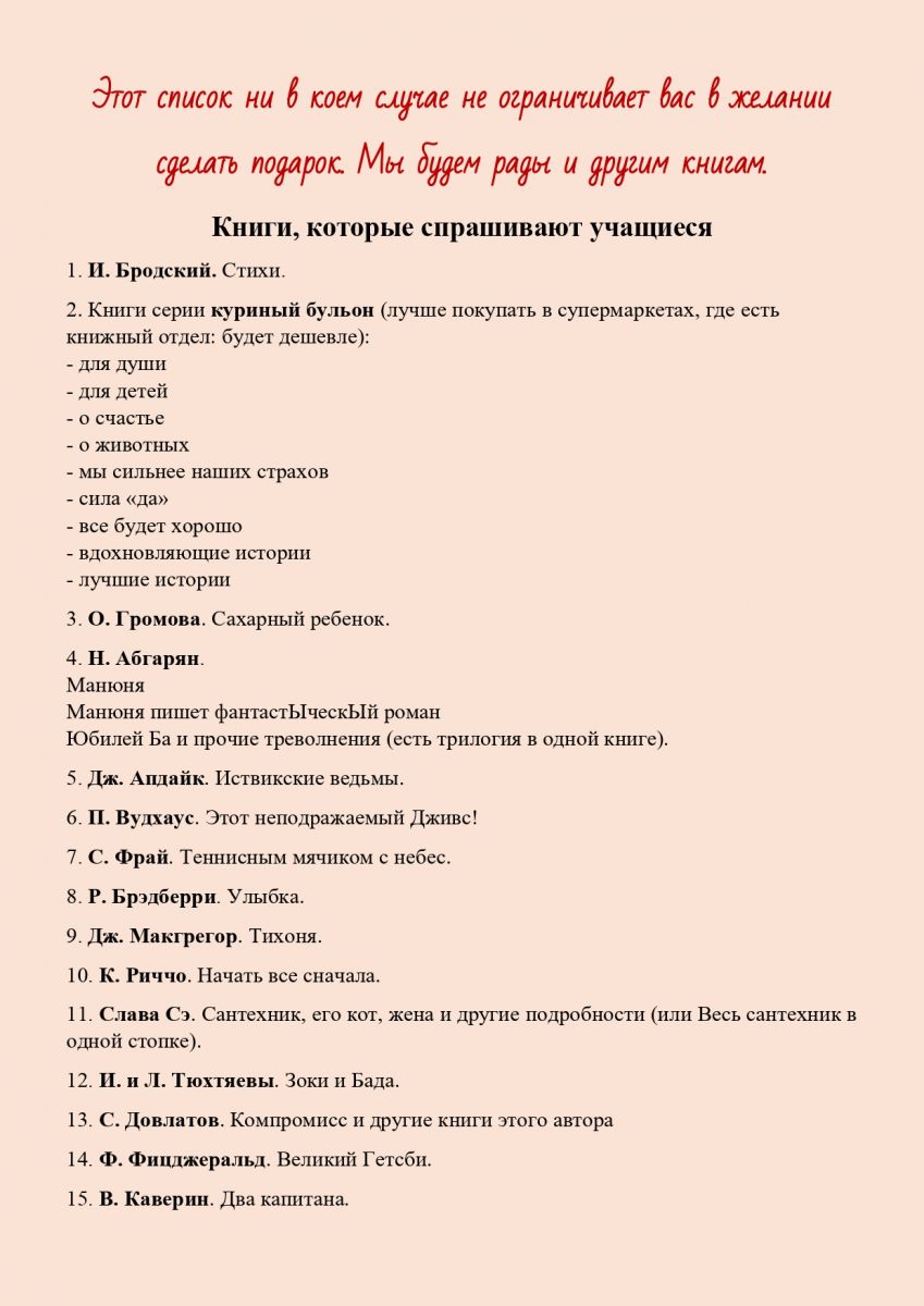 Список дефицитных в нашей библиотеке книг прилагается.