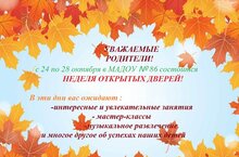 Приглашаем Вас посетить наш детский сад на "Неделе открытых дверей"! Где будет увлекательная и интересная совместная деятельность, творческие музыкальные занятия, консультации с учителем-логопедом, педагогом-психологом и многое другое.