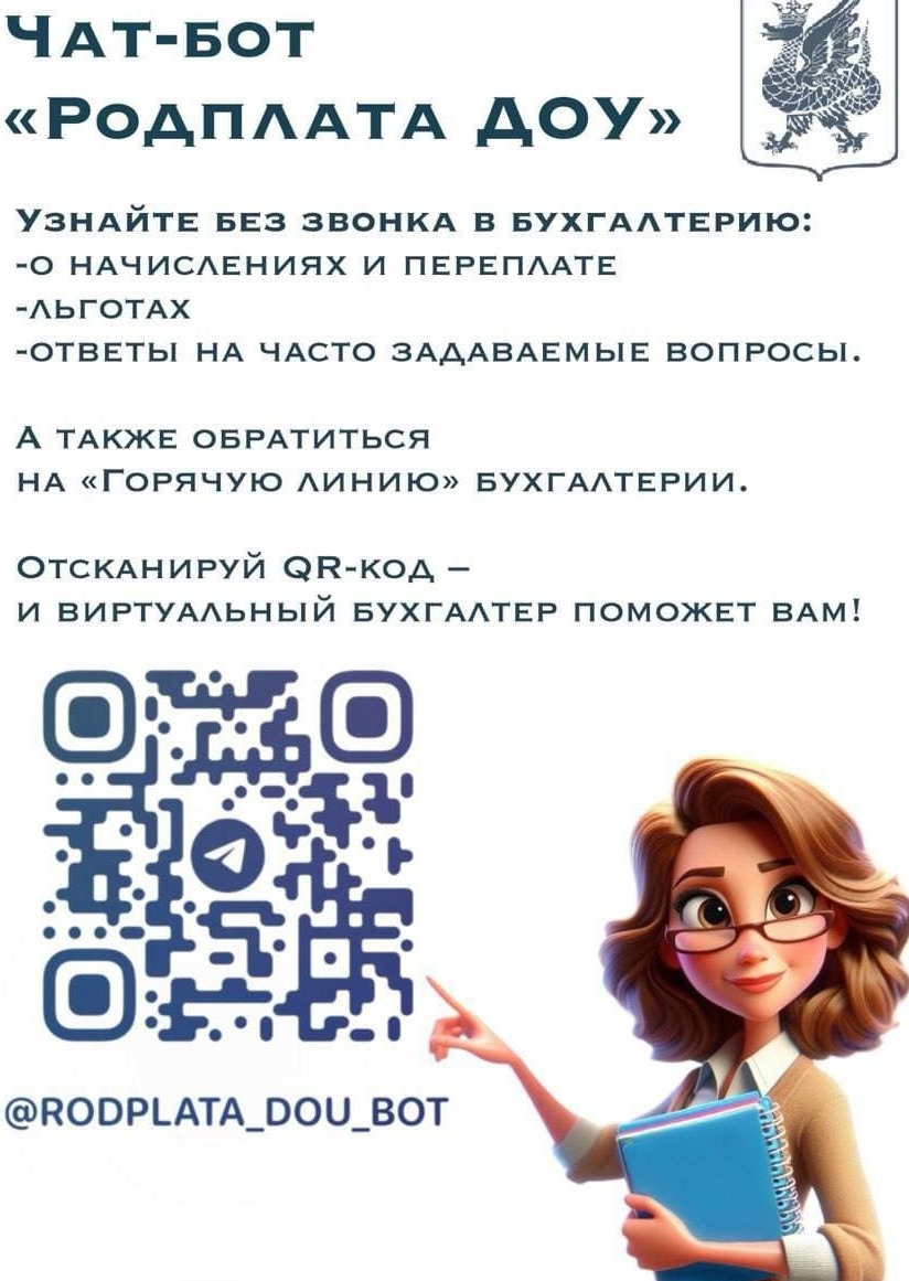 МКУ "ЦБО г.Казани " разработало Чат-бот "Родплата ДОУ", с помощью которого вы сможете без звонка в детский сад и бухгалтеру, получить информацию о начислениях и переплате, льготах, ответы на часто задаваемые вопросы , а также обратиться в чат "Горячая линия ЦБО" (2) (1).jpg)