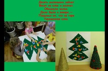 Дети первой младшей группы совместно с воспитателем сделали коллективную работу "Зайчата вокруг елки"