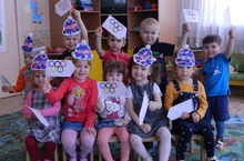 Дети первой младшей группы № 2 совместно с воспитателем Акмаевой Т.Н.на занятиях художественного творчества смастерили шапочки Олимпийских чемпионов и Олимпийский флаг. Да здравствует Олимпийский резерв!
