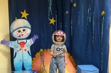 В фойе детского сада распожена фотозона, где можно не только сфотографироваться, но и примерить шлем космонавта!!! -