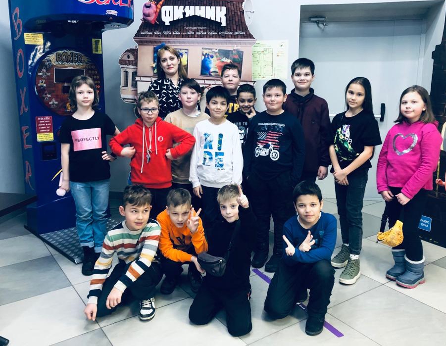 На каникулых ученики 3 "Г" класса совместно с классным руководителем посетили кинотеатр.