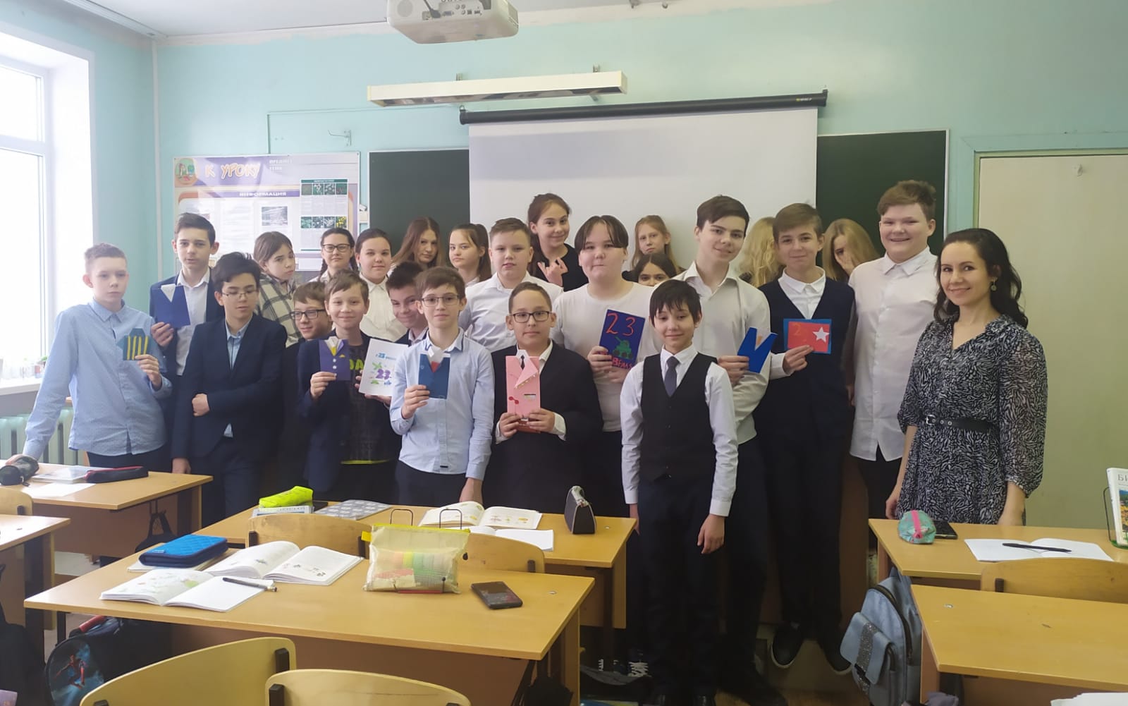 Классный час посвящённый, Дню Защитников Отечества, прошёл сегодня в 6"Б" классе.Девочки поздравили мальчиков с предстоящим праздником и вручили заранее подготовленные открытки сделанные своими руками.
