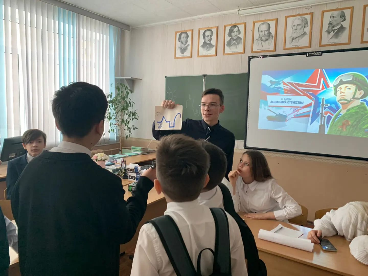 Сегодня в 5"Б" классе прошел тематический классный час с приглашением папы.Он рассказал о армии, как армия повлияла на выбор будущей профессии.