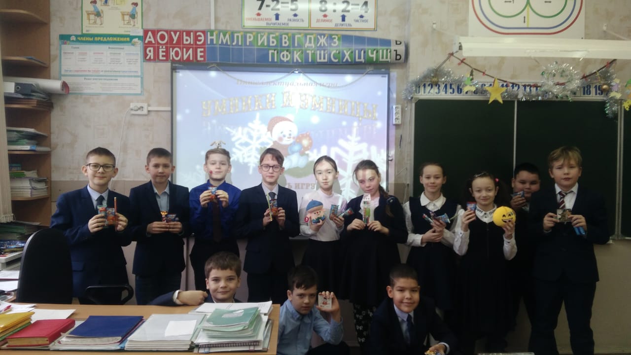 В преддверии нового года в 4"а" классе прошла игра"Умники и умницы" с беспроигрышной лотереей.