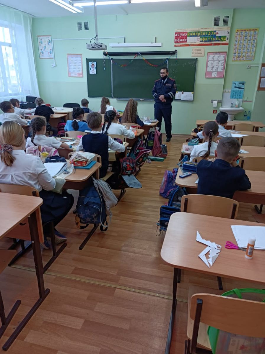 В преддверии зимних каникул с учениками начальной школы провел беседу инспектор Якупов А., по пропаганде безопасности дорожного движения. Он обратил внимание ребят на поведение в зоне ограниченной видимости и на скользкой дороге. Также он рассказал школьникам, что надо быть крайне внимательными и осторожными на дороге.