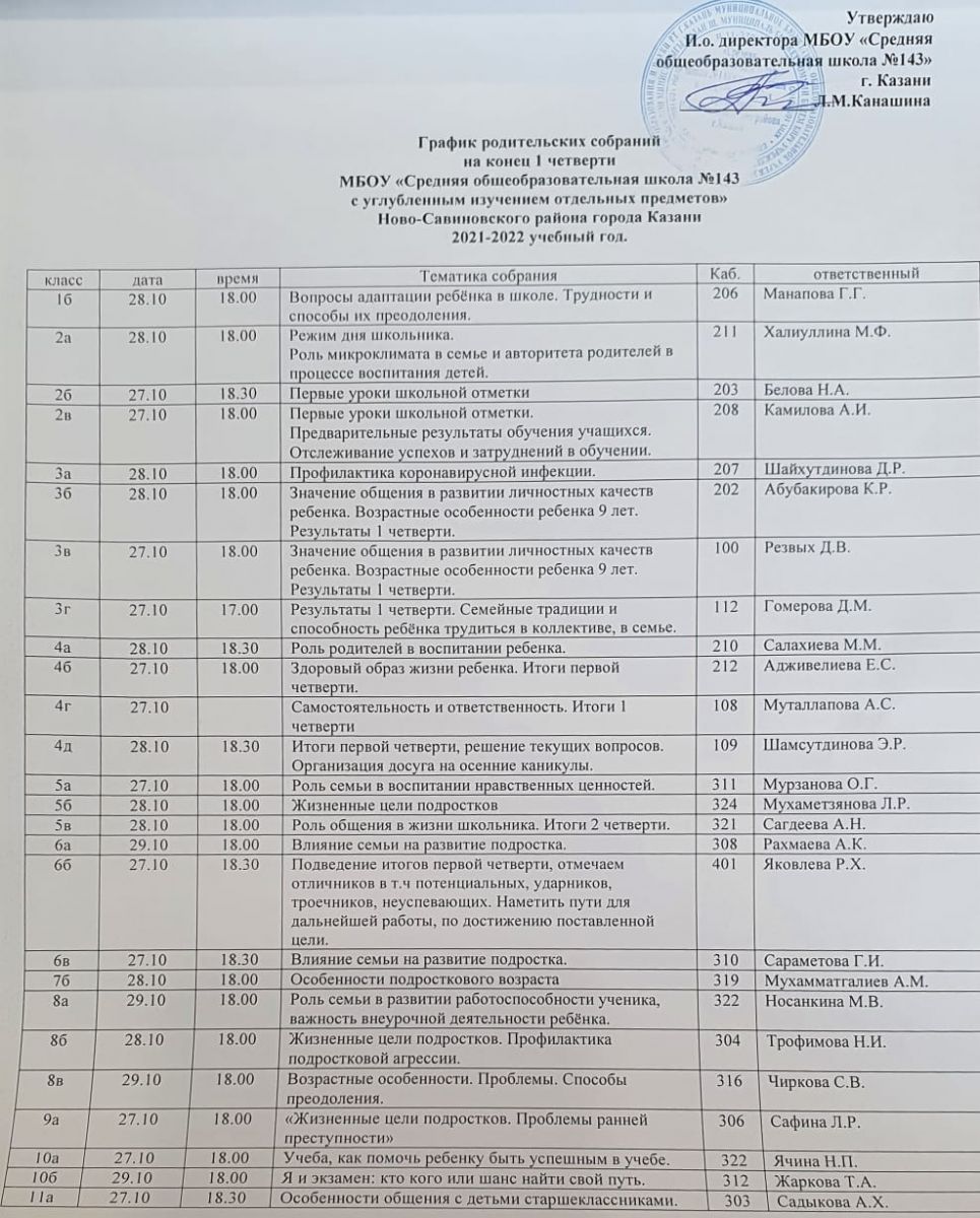 МБОУ «Средняя общеобразовательная школа №143 с углубленным изучением отдельных предметов» Ново-Савиновского района г. Казани