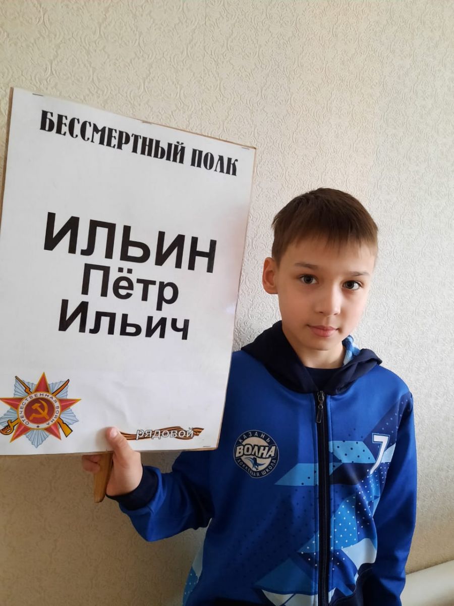 Ученик 5"В" класса ,Белов Миша гордится своим прадедом Ильиным Петром Ильичем и принимает участие в акции "10 дней до Победы""Бессмертный полк".