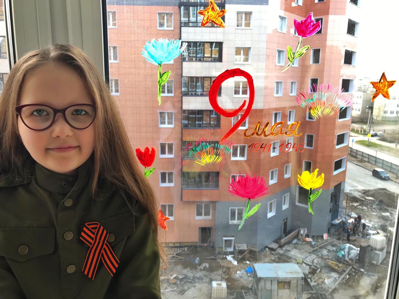 Латыпова Риана ученица 1 "В" класса участвует в акции "10 дней до Победы " в номинации "Окна Победы".